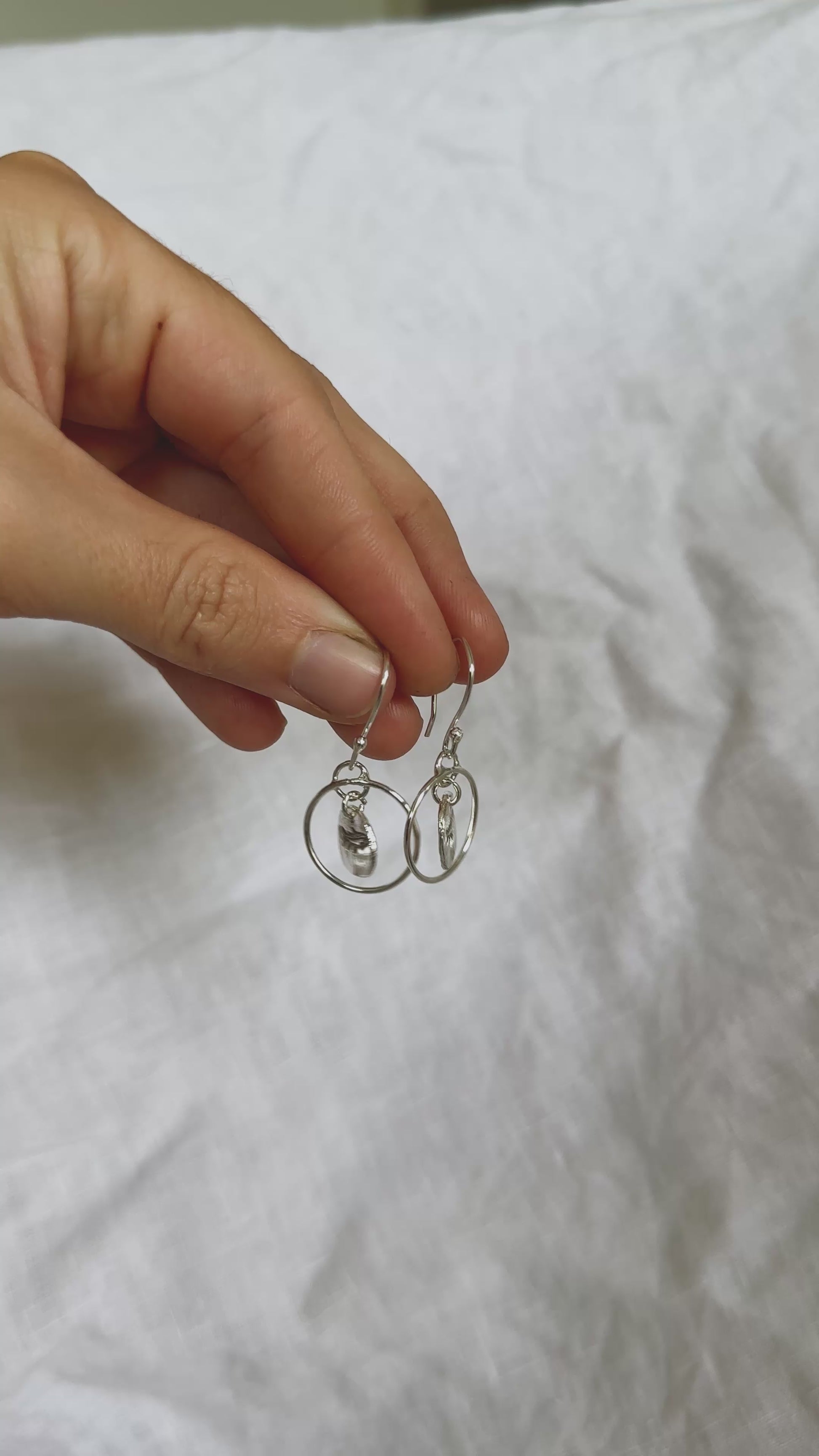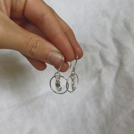 Inspired by the admirable determination of the trout swimming against the current, these delicate earrings capture the beauty of movement, purpose and resilience. Each pair features a hammered silver pebble with a hand-stamped trout silhouette detail, suspended within its silver hoop, creating a lot of beautiful movement in this piece. Shimmering with soft, silvery tones, evoking the sparkle of sunlight on a flowing stream. Made from 100% recycled sterling silver.