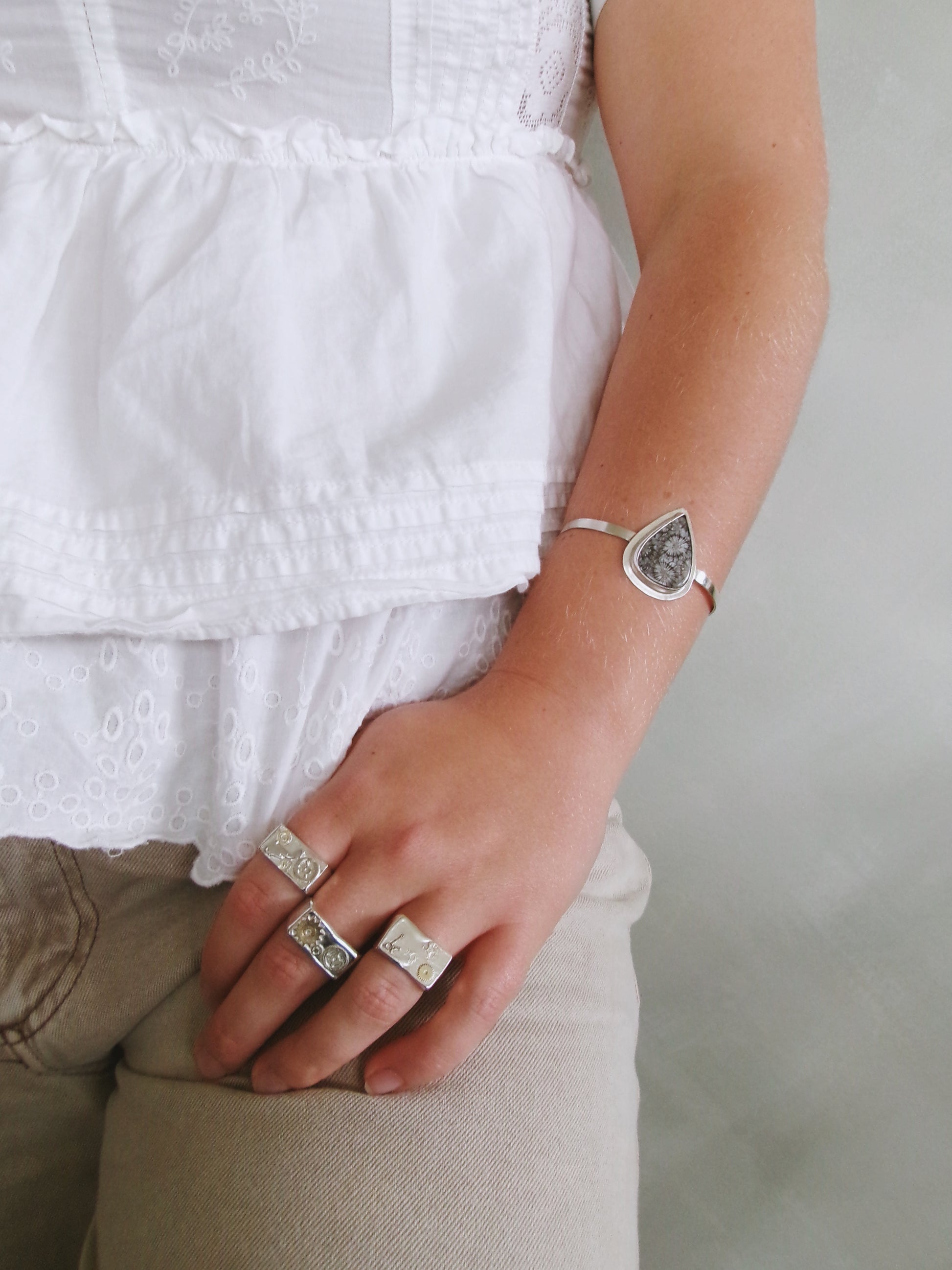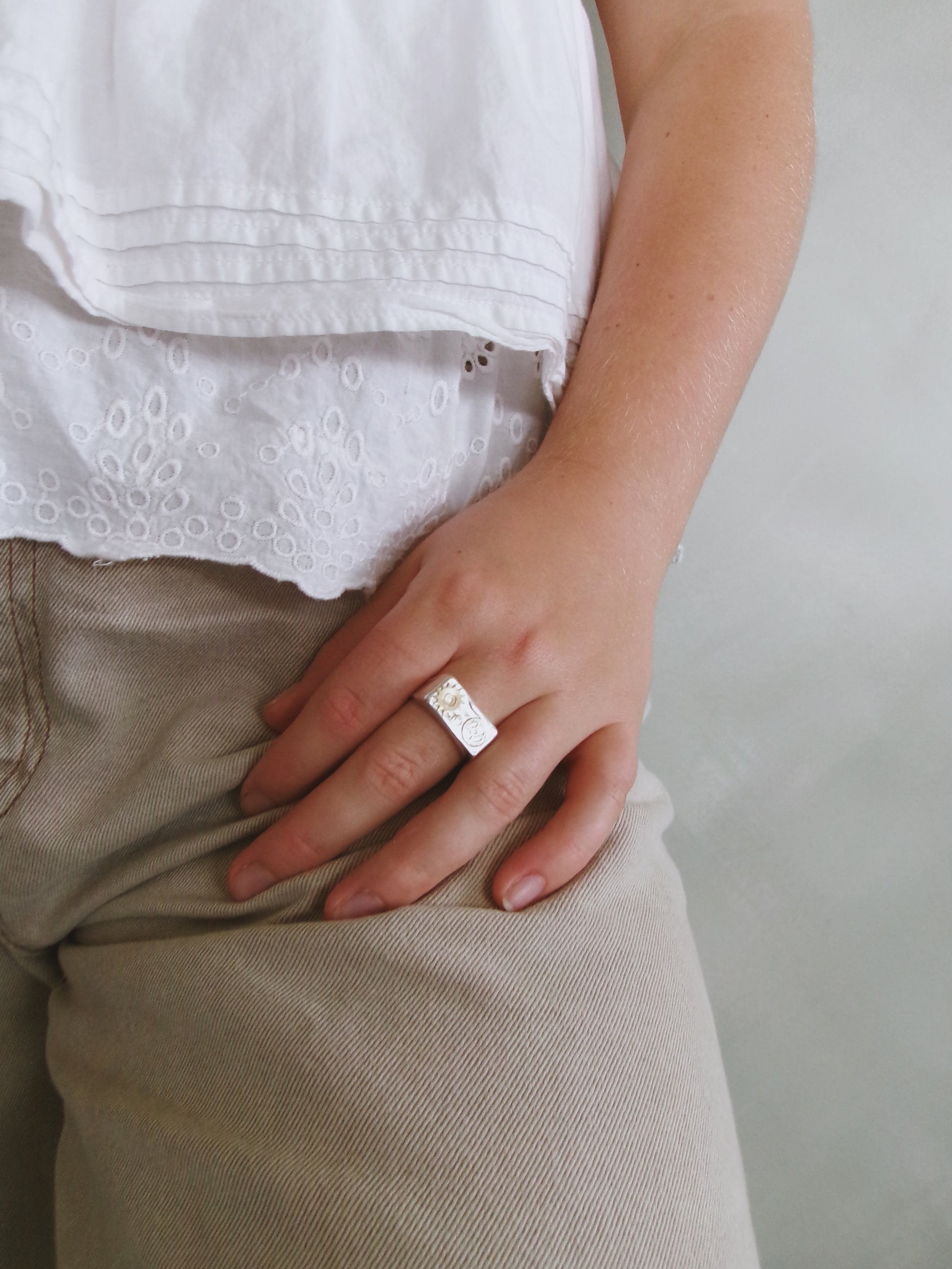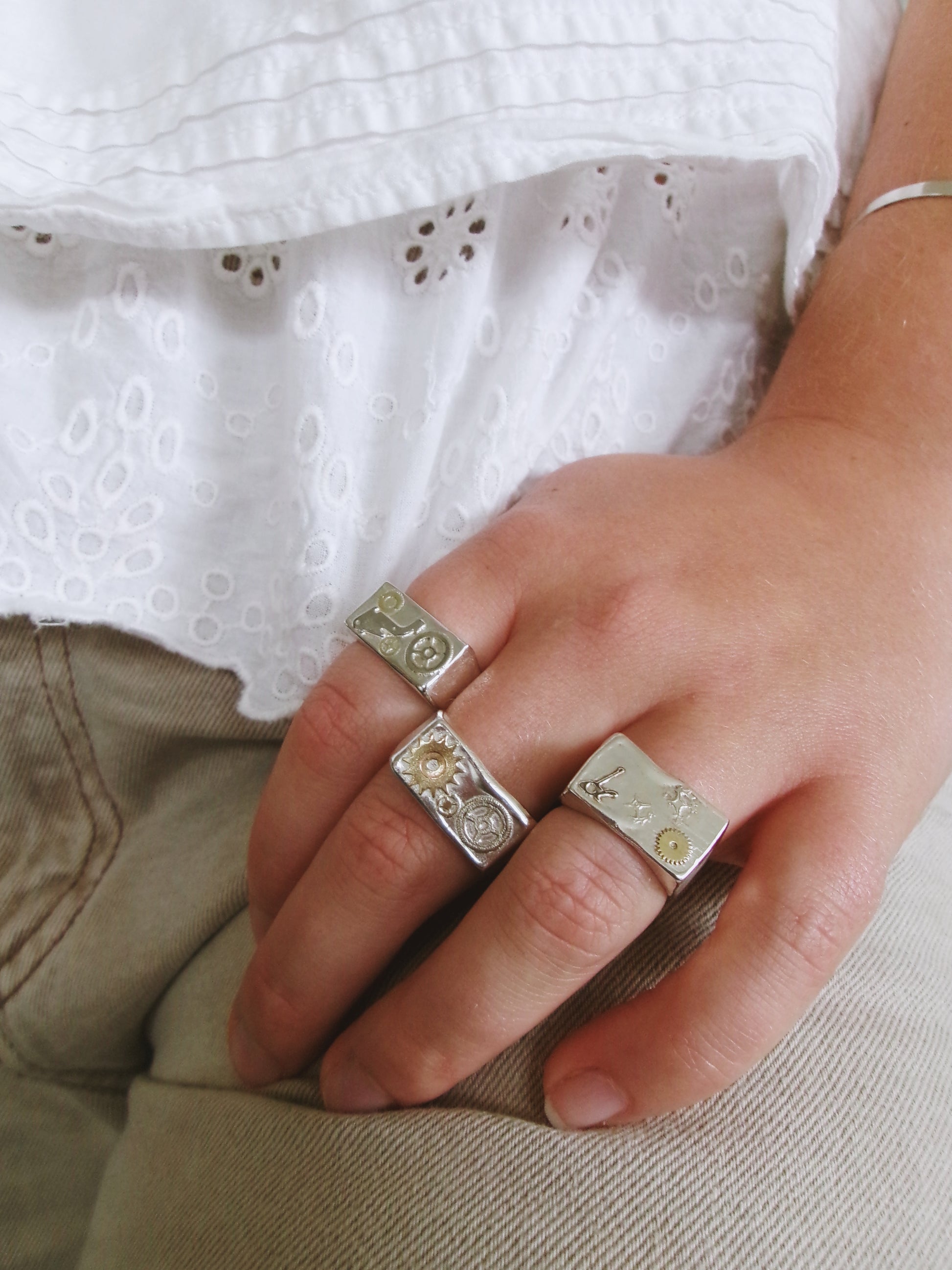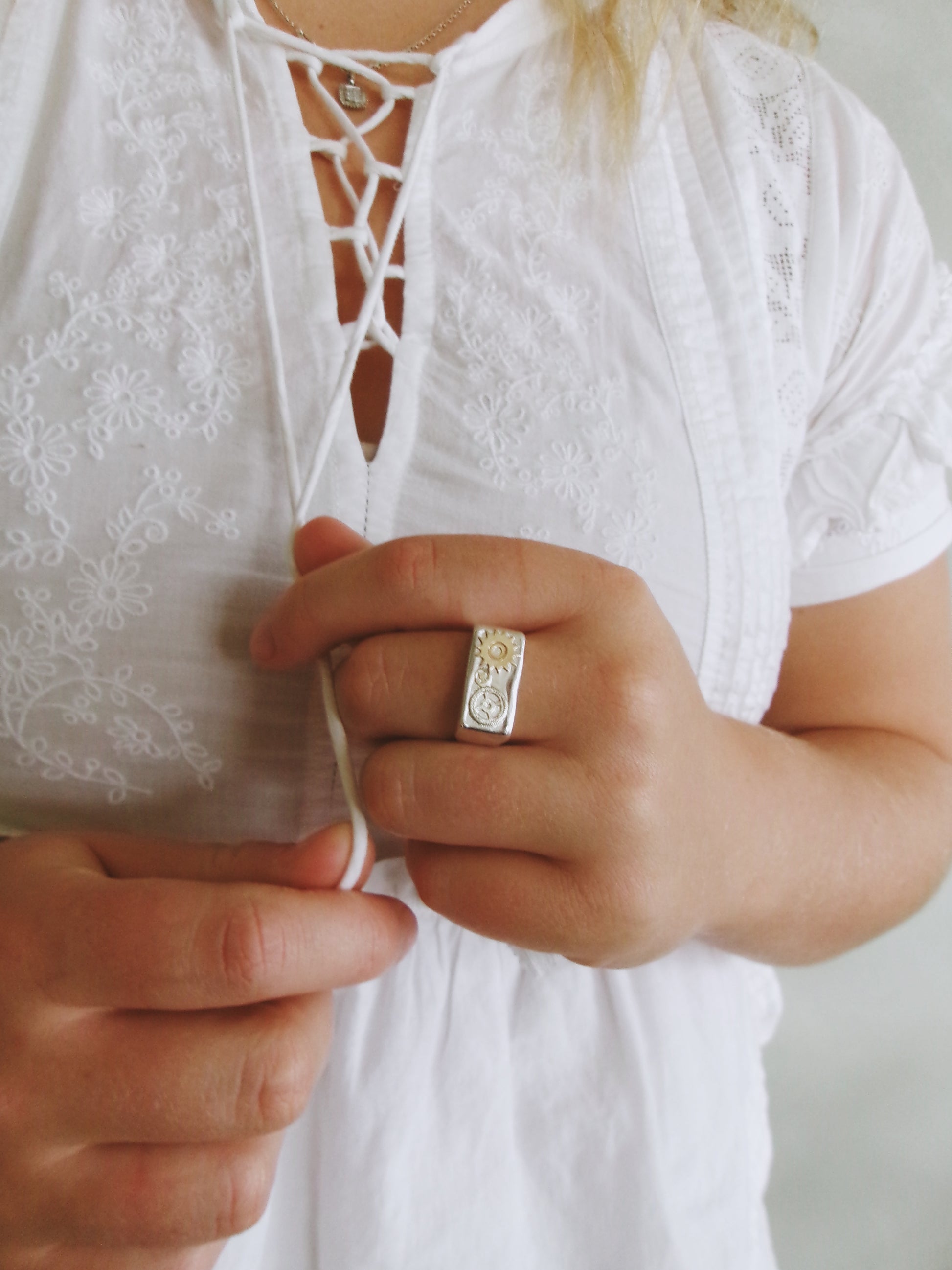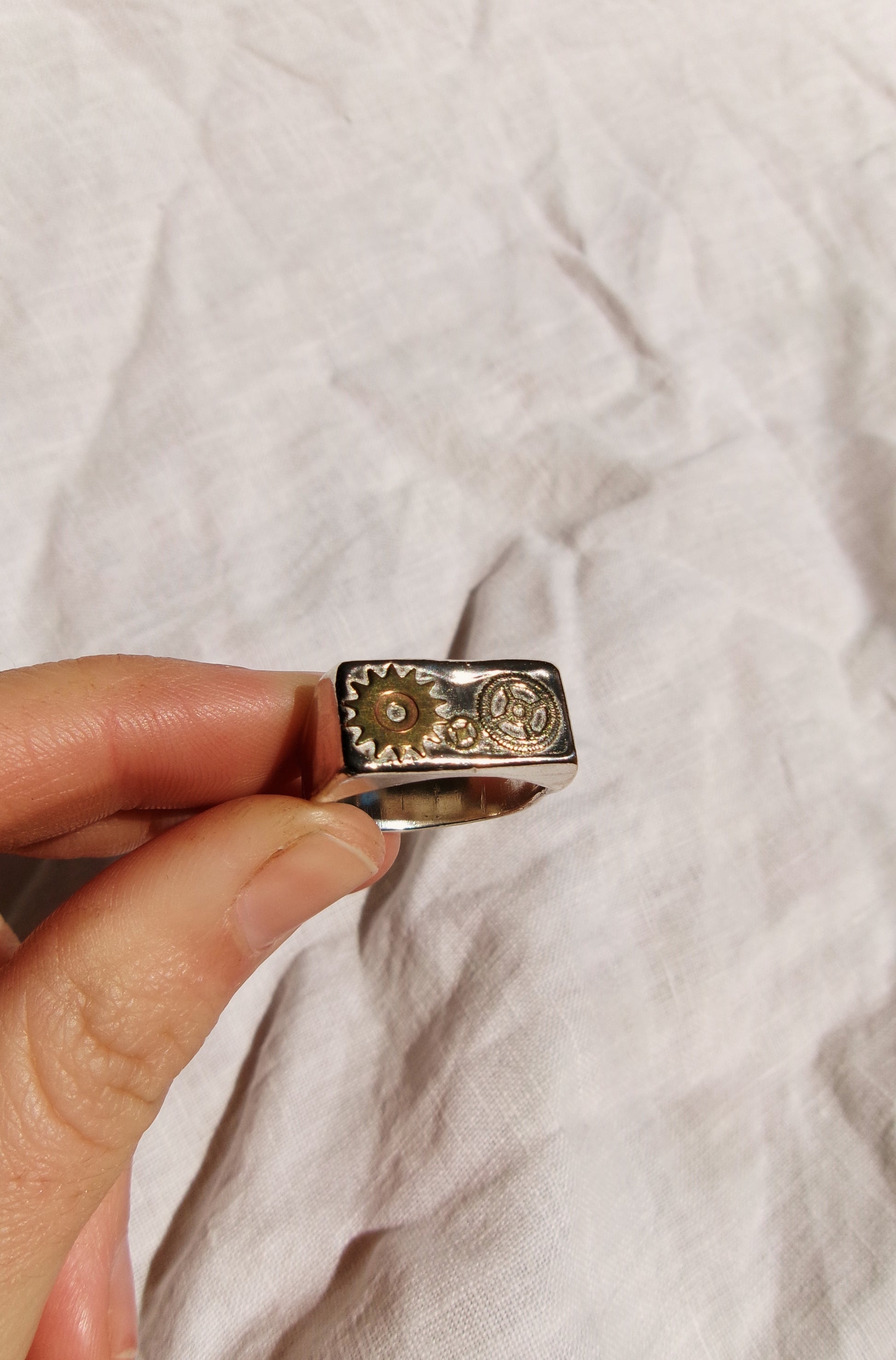 Crafted with 3 metals brass, silver, stainless steel, merging together symbolic of past present and future. A reminder to not live in the past , or the future, and miss the gift that is today. Size 11 (W)